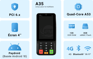 De plus, avec les certifications PCI PTS6.x et contact et sans contact, la sécurité et la rapidité sont garanties. Les commerçants peuvent accepter tout paiement, de manière simple et rapide. En bref, le PAX A35 est la solution de paiement idéale pour les commerces organisés qui souhaitent personnaliser l’expérience de paiement et offrir des services à valeur ajoutée sur le point de vente, tels que des programmes de dons, de fidélité et de promotions.