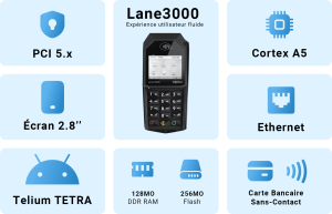 Le pinpad Ingenico Lane 3000 est un terminal connecté qui fonctionne en monétique centralisée AXIS relié directement au logiciel de caisse. Conçu pour gérer des milliers de transactions par jour, le terminal Ingenico Lane 3000 est un pinpad connecté. Il fonctionne en monétique centralisée AXIS, nécessitant une intégration avec le logiciel de caisse. De plus, il est disponible en deux formats : modulaire ou non-modulaire, permettant ainsi au détaillant de faire son choix.